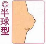 (2)、半球型:这是中国女性中较为常见的一种形状,这种形状的乳房前突的长度等于乳房基底部周围半径(乳房前突约为4~6厘米),胸围环差约14厘米,属较美观的乳房,着衣时可见到乳房形。其形态像半球,乳房浑圆、丰满、柔软、弹性十足,是女性最具美感的乳房。青年女性中半球形乳房约占百分之五十。