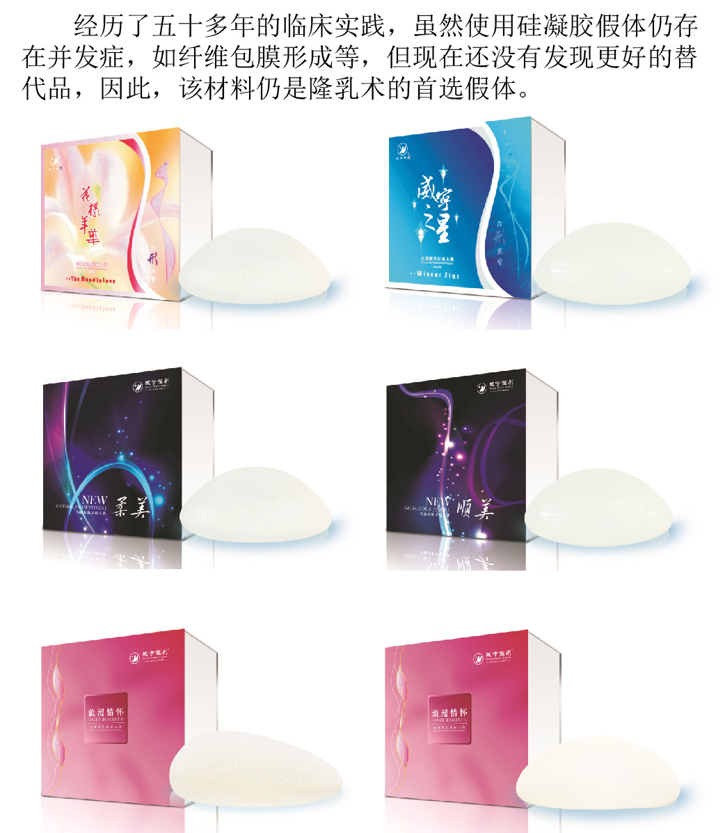 但是,硅凝胶假体应用于隆乳术后仍有一定的并发症,如纤维囊性化病、假体破裂等。国外报道假体应用10~15年后假体破裂的发生率可高达20%以上。在我国,极少数受术者安放硅凝胶假体后有关节酸痛,取出后症状好转。