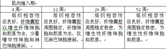 植入肌肉植入4周、12周、26周和52周取样观察,各期组织学反应