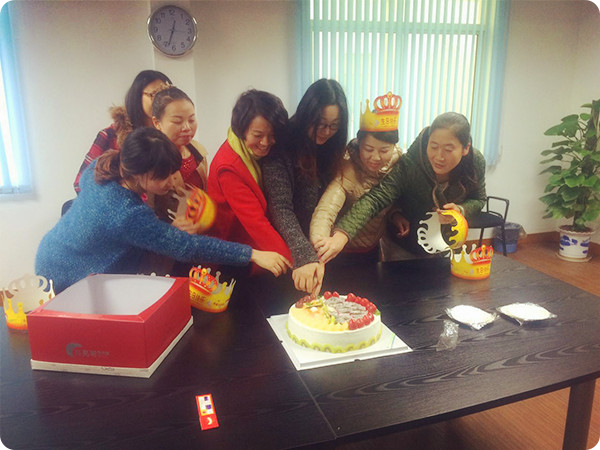 公司今天的成绩包含着每个员工在岗位上尽的每一份力,一个蛋糕象征一个团结的集体,一支支闪亮的蜡烛像一颗颗跳动的心,心因集体而精彩,集体因心而自豪。